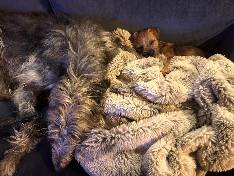Il piccolo Lonterlas Tommaso (CH Lonterlas Oomingmak x Lonterlas Pleinelune) ha finalmente raggiunto la suo nuova, meravigliosa famiglia da Japser de Vos e Ineke de Vos Brugman,da anni stimati allevatori di deerhound e più di recente di border terrier in Olanda.